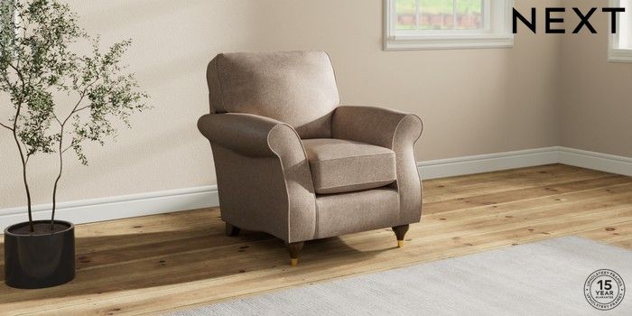 6.12.1 Buy Ashford Small Armchair Plush Chenille Mid Natural Modern Turned Metal Cap - Mid from the Next UK online shop Click here to use our accessible website