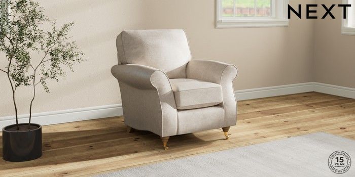 6.12.1 Buy Ashford Small Armchair Plush Chenille Oyster Castor - Light from the Next UK online shop Click here to use our accessible website