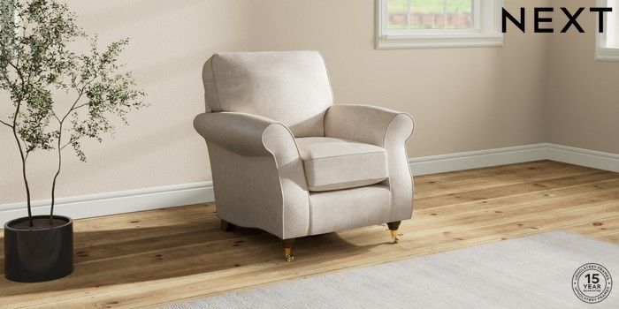 6.12.1 Buy Ashford Small Armchair Plush Chenille Oyster Castor - Mid from the Next UK online shop Click here to use our accessible website
