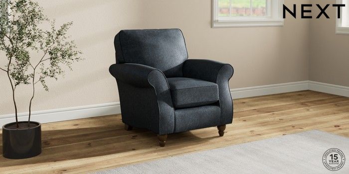 6.12.1 Buy Ashford Small Armchair Plush Chenille Slate Blue Low Turned - Mid from the Next UK online shop Click here to use our accessible website