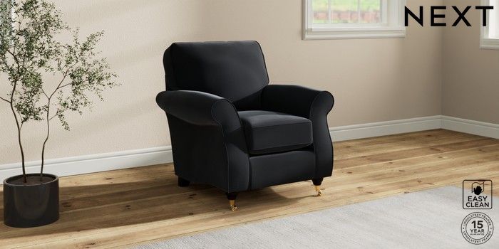 6.12.1 Buy Ashford Small Armchair Plush Velvet Easy Clean Charcoal Grey Castor - Dark from the Next UK online shop Click here to use our accessible website