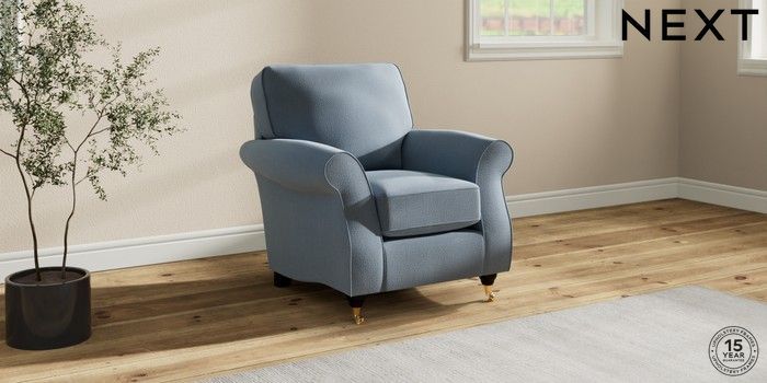 6.12.1 Buy Ashford Small Armchair Relaxed Linen Look Mid Blue Castor - Dark from the Next UK online shop Click here to use our accessible website