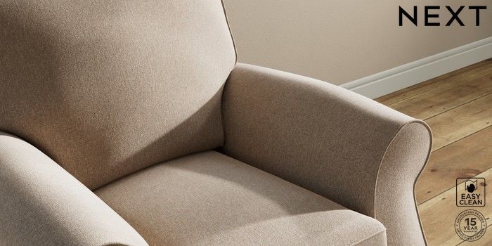 6.12.1 Buy Ashford Small Armchair Tweedy Blend Easy Clean Light Dove Natural Modern Turned Metal Cap - Mid from the Next UK online shop Click here to use our accessible website