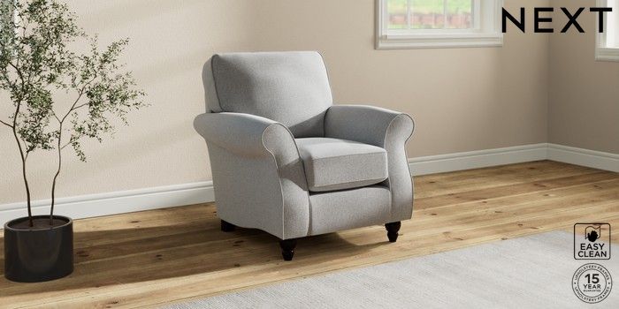 6.12.1 Buy Ashford Small Armchair Tweedy Blend Easy Clean Light Silver Grey Low Turned - Dark from the Next UK online shop Click here to use our accessible website