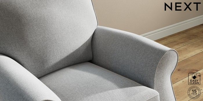 6.12.1 Buy Ashford Small Armchair Tweedy Blend Easy Clean Light Silver Grey Modern Turned Metal Cap - Mid from the Next UK online shop Click here to use our accessible website