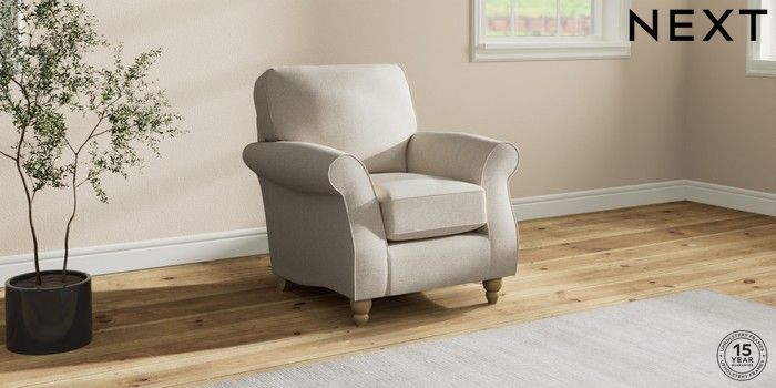 6.12.1 Buy Ashford Small Armchair Tweedy Chenille Oyster Low Turned - Light from the Next UK online shop Click here to use our accessible website