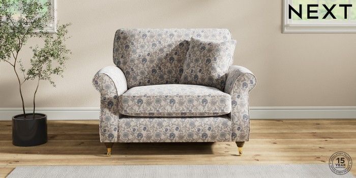 7.3.1 Buy Ashford Snuggle Relaxed Linen Look Print Woodblock Floral Blue Castor - Mid from the Next UK online shop Click here to use our accessible website