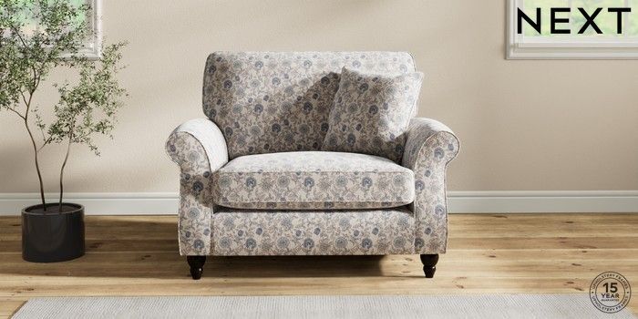 7.3.1 Buy Ashford Snuggle Relaxed Linen Look Print Woodblock Floral Blue Low Turned - Dark from the Next UK online shop Click here to use our accessible website