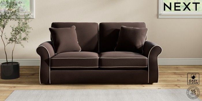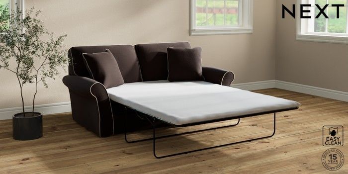 7.3.1 Buy Ashford Sofa Bed Fine Chenille with Contrast Chocolate Brown and Oyster Flat Bun - Mid from the Next UK online shop Click here to use our accessible website