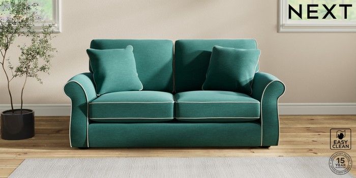 7.3.1 Buy Ashford Sofa Bed Fine Chenille with Contrast Dark Juniper Green and Oyster Flat Bun - Dark from the Next UK online shop Click here to use our accessible website