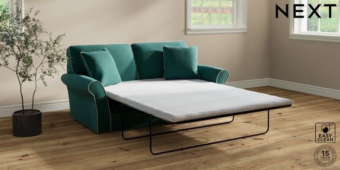 7.3.1 Buy Ashford Sofa Bed Fine Chenille with Contrast Dark Juniper Green and Oyster Flat Bun - Light from the Next UK online shop Click here to use our accessible website