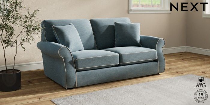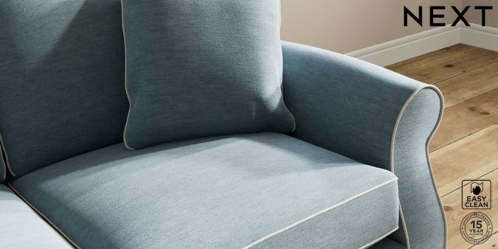 7.3.1 Buy Ashford Sofa Bed Fine Chenille with Contrast Mid Blue and Oyster Flat Bun - Dark from the Next UK online shop Click here to use our accessible website