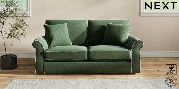 7.3.1 Buy Ashford Sofa Bed Fine Chenille with Contrast Mid Khaki Green and Oyster Flat Bun - Light from the Next UK online shop Click here to use our accessible website