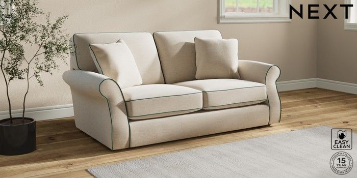 7.3.1 Buy Ashford Sofa Bed Fine Chenille with Contrast Oyster and Dark Juniper Green Flat Bun - Light from the Next UK online shop Click here to use our accessible website