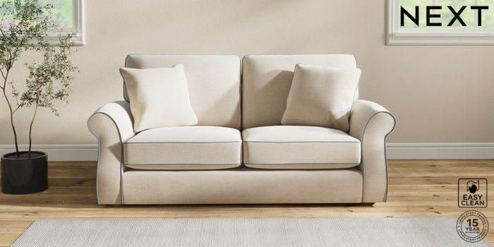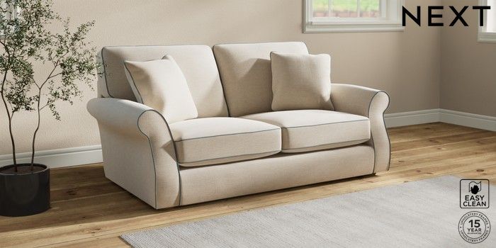 7.3.1 Buy Ashford Sofa Bed Fine Chenille with Contrast Oyster and Mid Blue Flat Bun - Light from the Next UK online shop Click here to use our accessible website