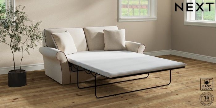 7.3.1 Buy Ashford Sofa Bed Fine Chenille with Contrast Oyster and Mid Mulberry Purple Flat Bun - Light from the Next UK online shop Click here to use our accessible website