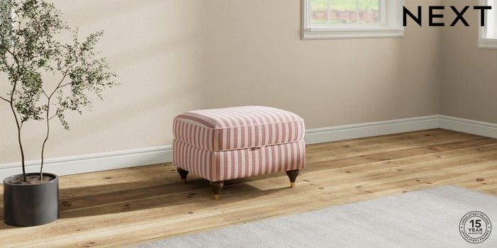 7.3.1 Buy Ashford Storage Footstool Bold Chenille Stripe Dark Pink Modern Turned Metal Cap - Mid from the Next UK online shop