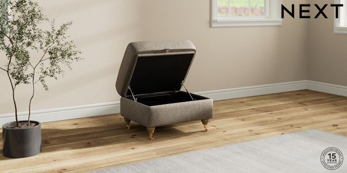 6.12.1 Buy Ashford Storage Footstool Cotswold Chenille Mid Mink Brown Castor - Light from the Next UK online shop Click here to use our accessible website