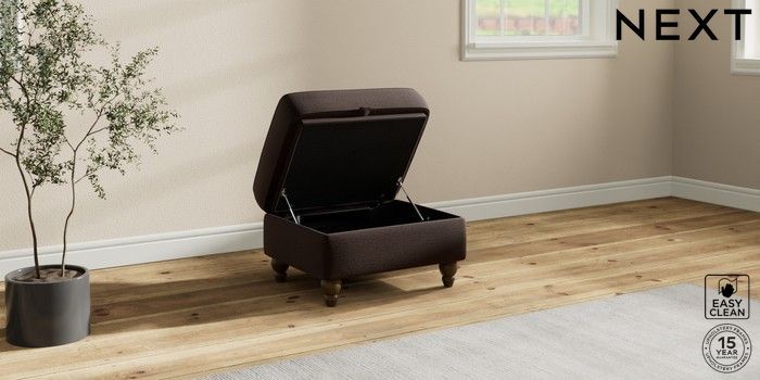 6.12.1 Buy Ashford Storage Footstool Fine Chenille Easy Clean Chocolate Brown Low Turned - Mid from the Next UK online shop Click here to use our accessible website