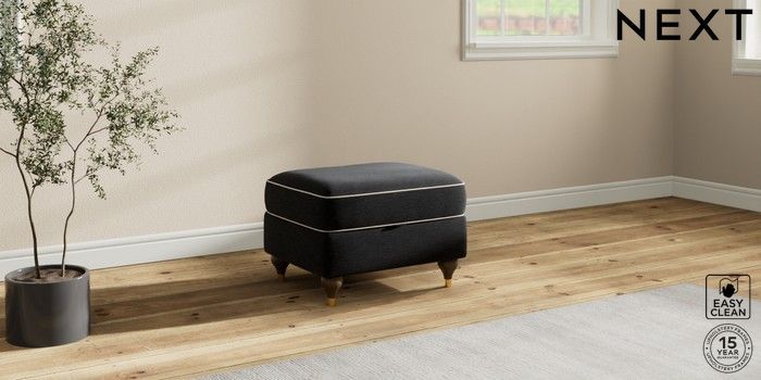 7.3.1 Buy Ashford Storage Footstool Fine Chenille with Contrast Black and Oyster Modern Turned Metal Cap - Mid from the Next UK online shop Click here to use our accessible website