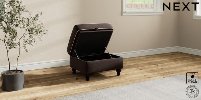 7.3.1 Buy Ashford Storage Footstool Fine Chenille with Contrast Chocolate Brown and Oyster Low Turned - Dark from the Next UK online shop Click here to use our accessible website