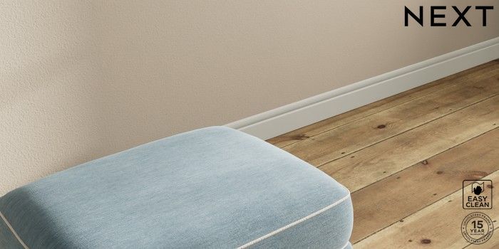 7.3.1 Buy Ashford Storage Footstool Fine Chenille with Contrast Mid Blue and Oyster Low Turned - Dark from the Next UK online shop Click here to use our accessible website