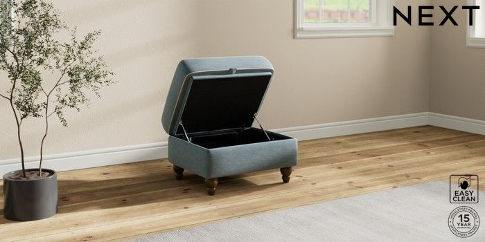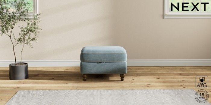 7.3.1 Buy Ashford Storage Footstool Fine Chenille with Contrast Mid Blue and Oyster Low Turned - Mid from the Next UK online shop Click here to use our accessible website