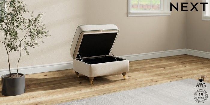 7.3.1 Buy Ashford Storage Footstool Fine Chenille with Contrast Oyster and Dark Juniper Green Castor - Light from the Next UK online shop Click here to use our accessible website