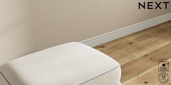 7.3.1 Buy Ashford Storage Footstool Fine Chenille with Contrast Oyster and Mid Blue Modern Turned Metal Cap - Mid from the Next UK online shop Click here to use our accessible website