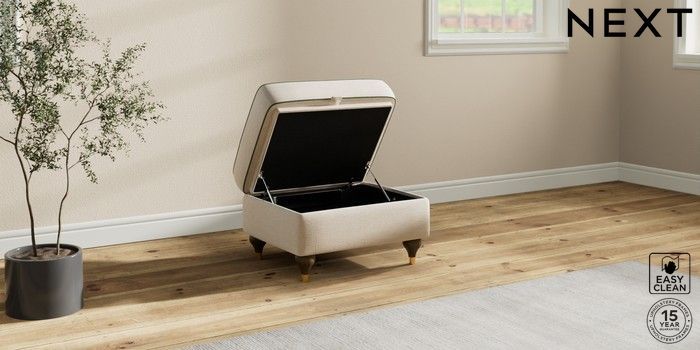7.3.1 Buy Ashford Storage Footstool Fine Chenille with Contrast Oyster and Mid Khaki Green Modern Turned Metal Cap - Mid from the Next UK online shop Click here to use our accessible website
