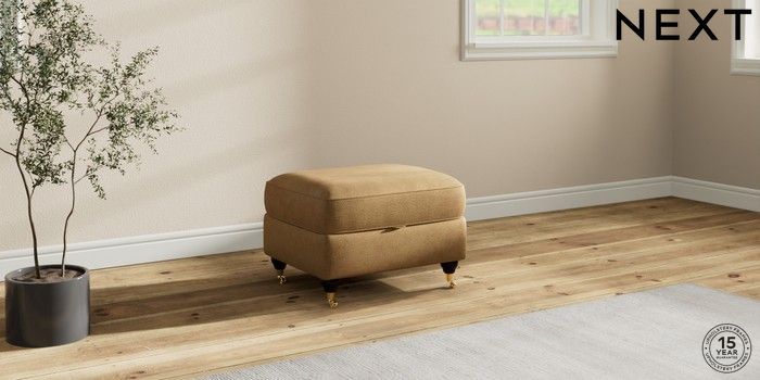 6.12.1 Buy Ashford Storage Footstool Luxe Chenille Honey Yellow Castor - Dark from the Next UK online shop Click here to use our accessible website
