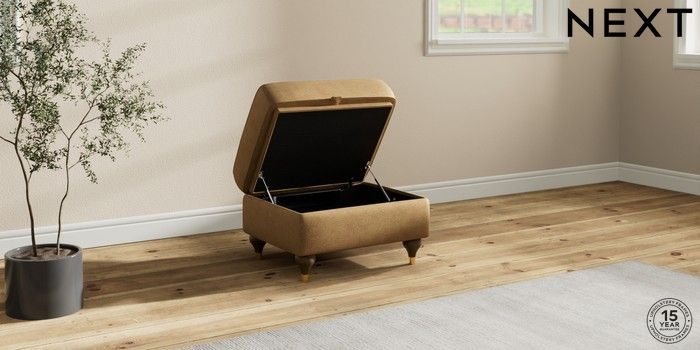 6.12.1 Buy Ashford Storage Footstool Luxe Chenille Honey Yellow Modern Turned Metal Cap - Mid from the Next UK online shop Click here to use our accessible website
