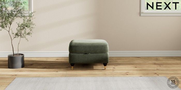 6.12.1 Buy Ashford Storage Footstool Luxe Chenille Mid Green Castor - Dark from the Next UK online shop Click here to use our accessible website
