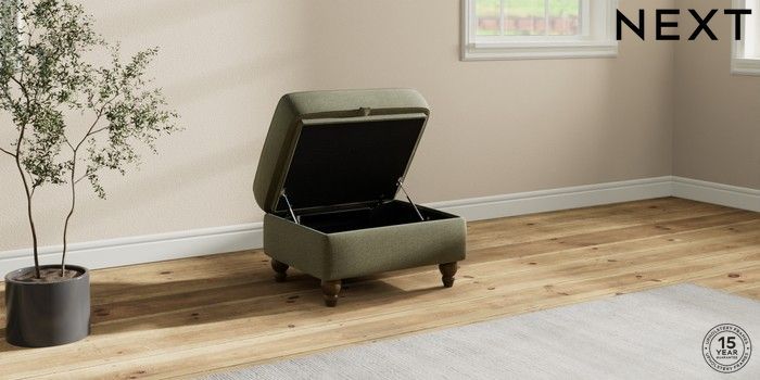 6.12.1 Buy Ashford Storage Footstool Ripple Chenille Mid Moss Green Low Turned - Mid from the Next UK online shop Click here to use our accessible website