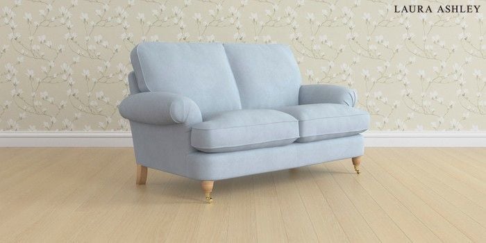 6.12.1 Buy Beaumaris by Laura Ashley 2 Seater Sofa Ailsworth Newport Blue Low Brass Castor - Light Oak from the Next UK online shop Click here to use our accessible website