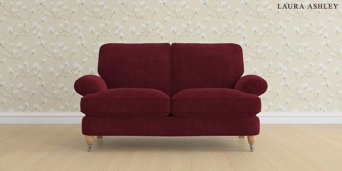 6.12.1 Buy Beaumaris by Laura Ashley 2 Seater Sofa Alwyn Velvet Burgundy Red Low Chrome Castor - Light Oak from the Next UK online shop Click here to use our accessible website