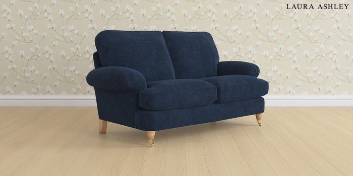 6.12.1 Buy Beaumaris by Laura Ashley 2 Seater Sofa Alwyn Velvet Midnight Navy Low Brass Castor - Light Oak from the Next UK online shop Click here to use our accessible website
