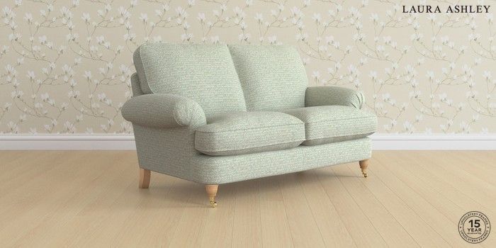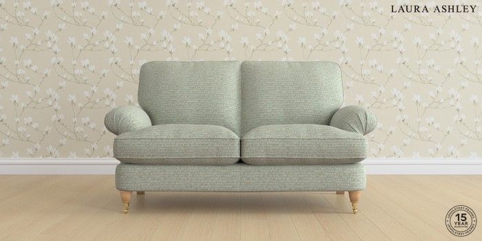6.12.1 Buy Beaumaris by Laura Ashley 2 Seater Sofa Borwick Newport Blue Low Brass Castor - Light Oak from the Next UK online shop Click here to use our accessible website