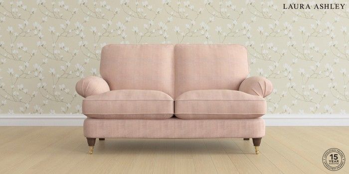 6.12.1 Buy Beaumaris by Laura Ashley 2 Seater Sofa Edwin Chenille Blush Pink Low Brass Castor - Chestnut from the Next UK online shop Click here to use our accessible website