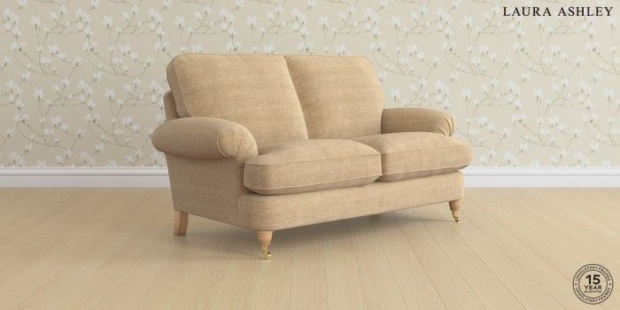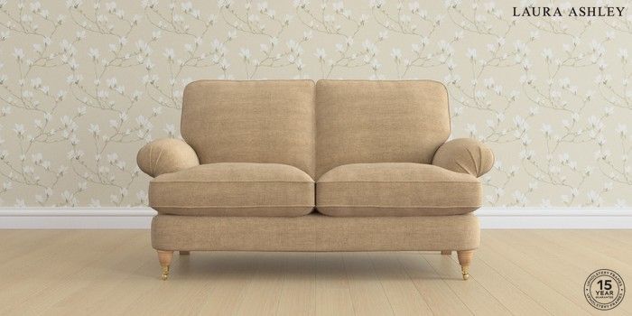 6.12.1 Buy Beaumaris by Laura Ashley 2 Seater Sofa Edwin Chenille Gold Natural Low Brass Castor - Light Oak from the Next UK online shop Click here to use our accessible website