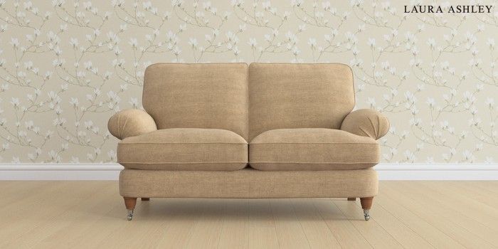 6.12.1 Buy Beaumaris by Laura Ashley 2 Seater Sofa Edwin Chenille Gold Natural Low Chrome Castor - Teak from the Next UK online shop Click here to use our accessible website