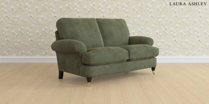 6.12.1 Buy Beaumaris by Laura Ashley 2 Seater Sofa Edwin Chenille Hedgerow Green Low Brass Castor - Black from the Next UK online shop Click here to use our accessible website