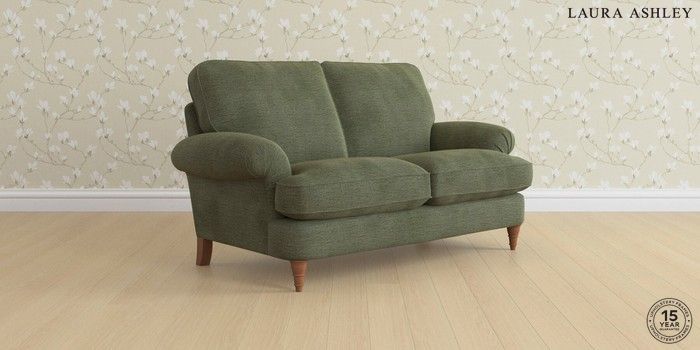 6.12.13 Buy Beaumaris by Laura Ashley 2 Seater Sofa Edwin Chenille Hedgerow Green Low Turned - Teak from the Next UK online shop Click here to use our accessible website