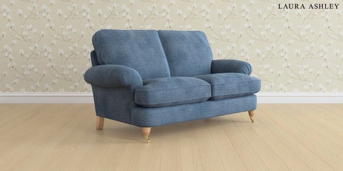 6.12.1 Buy Beaumaris by Laura Ashley 2 Seater Sofa Edwin Chenille Seaspray Blue Low Brass Castor - Light Oak from the Next UK online shop Click here to use our accessible website