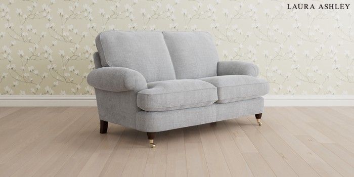 6.12.1 Buy Beaumaris by Laura Ashley 2 Seater Sofa Edwin Chenille Silver Grey Low Brass Castor - Chestnut from the Next UK online shop Click here to use our accessible website