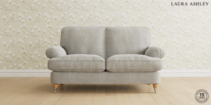 6.12.1 Buy Beaumaris by Laura Ashley 2 Seater Sofa Edwin Chenille Silver Grey Low Chrome Castor - Light Oak from the Next UK online shop Click here to use our accessible website