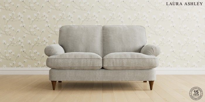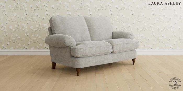6.12.1 Buy Beaumaris by Laura Ashley 2 Seater Sofa Edwin Chenille Silver Grey Low Turned - Teak from the Next UK online shop Click here to use our accessible website