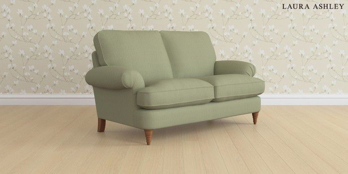 6.12.1 Buy Beaumaris by Laura Ashley 2 Seater Sofa Edwin Herringbone Hedgerow Green Low Turned - Teak from the Next UK online shop Click here to use our accessible website