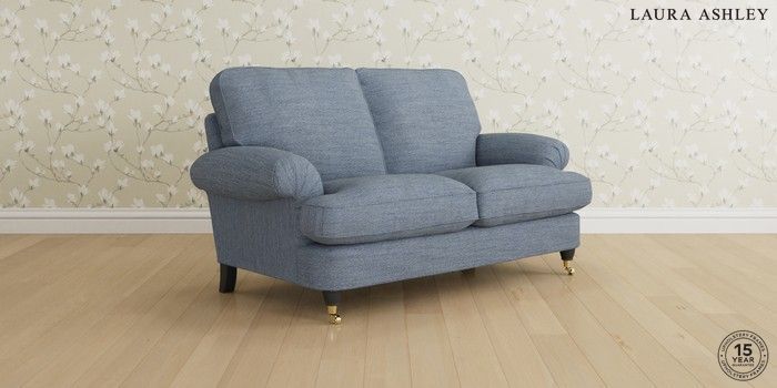 6.12.13 Buy Beaumaris by Laura Ashley 2 Seater Sofa Harley Seaspray Blue Low Brass Castor - Black from the Next UK online shop Click here to use our accessible website