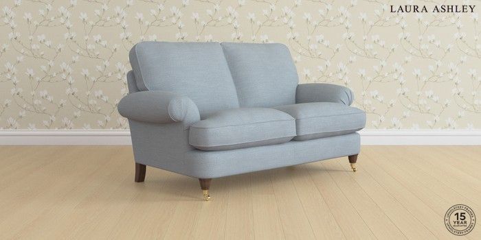 6.12.1 Buy Beaumaris by Laura Ashley 2 Seater Sofa Kinsham Seaspray Blue Low Brass Castor - Chestnut from the Next UK online shop Click here to use our accessible website